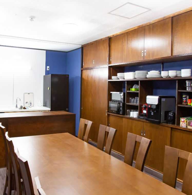 ダイニングにはご自由にお使いいただける電子レンジや冷蔵庫、ポットを設置しています。